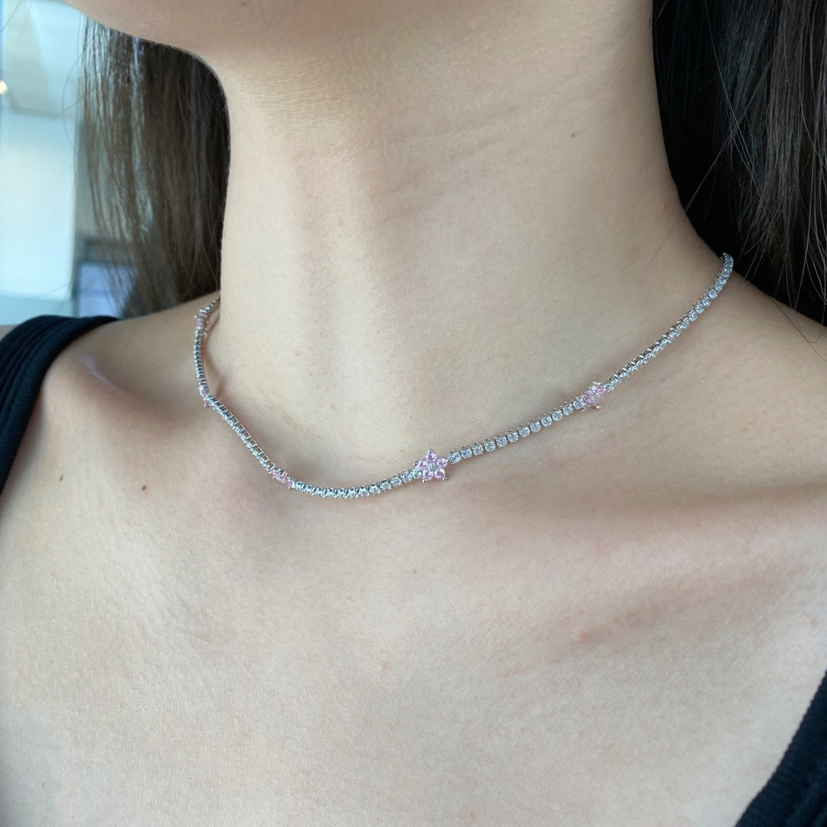 Luxurious Colorful Flower Tennis Necklace
